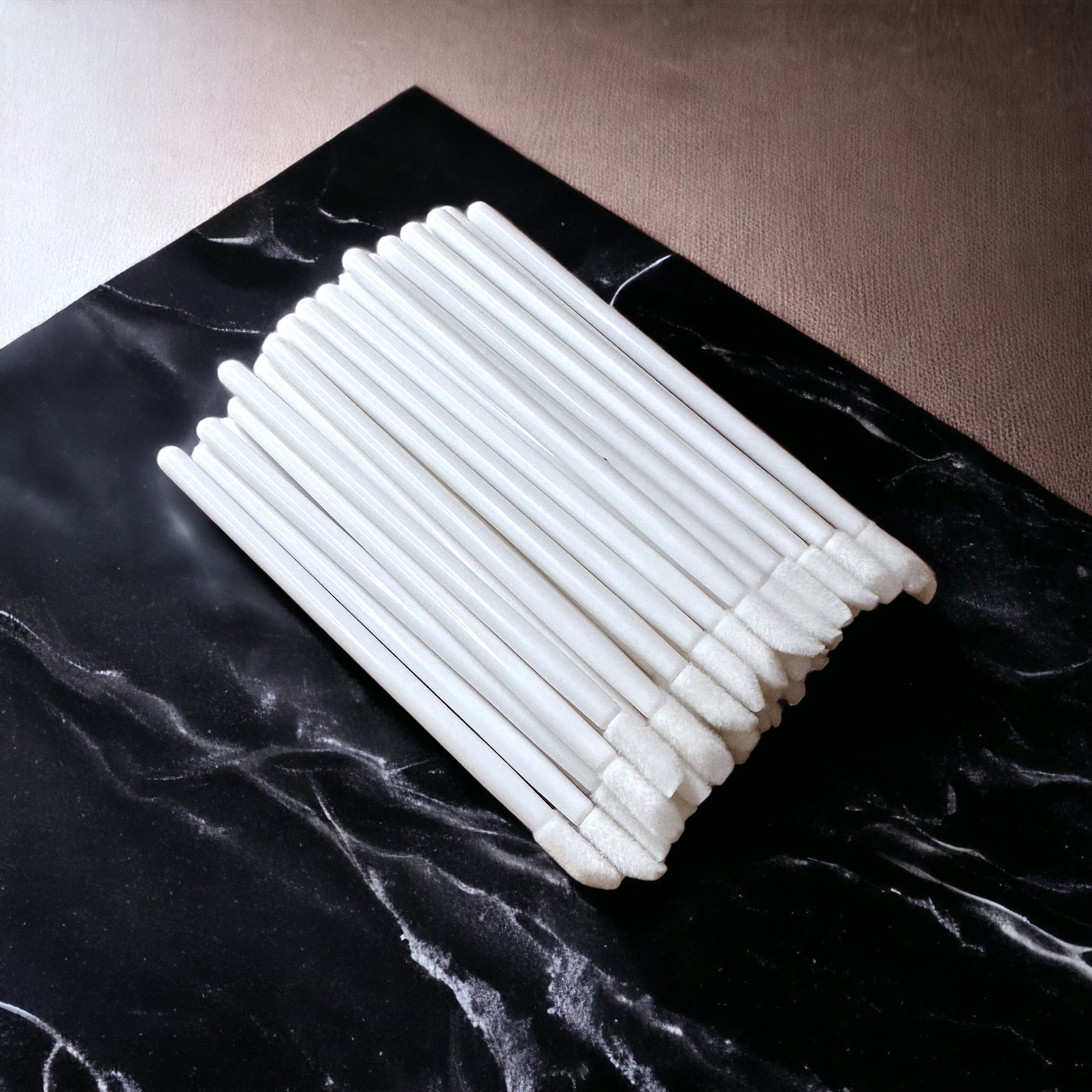 Our pack of 50 all-white disposable lip wand applicators, a versatile tool that can be used for various purposes. These lip wands are perfect for product application, wiping, or scooping, and are a must-have addition to your beauty service kit. Gentle on the skin.