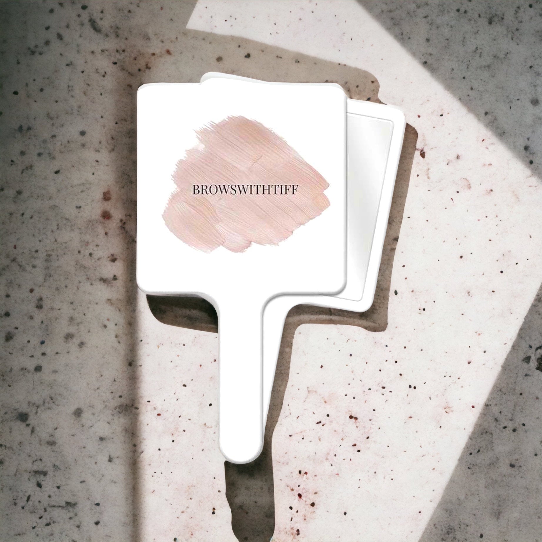 Our iconic BROWSWITHTIFF mirror is the ideal size for handheld use, allowing you to conveniently show clients their impeccable brows. Ideal for any beauty service.