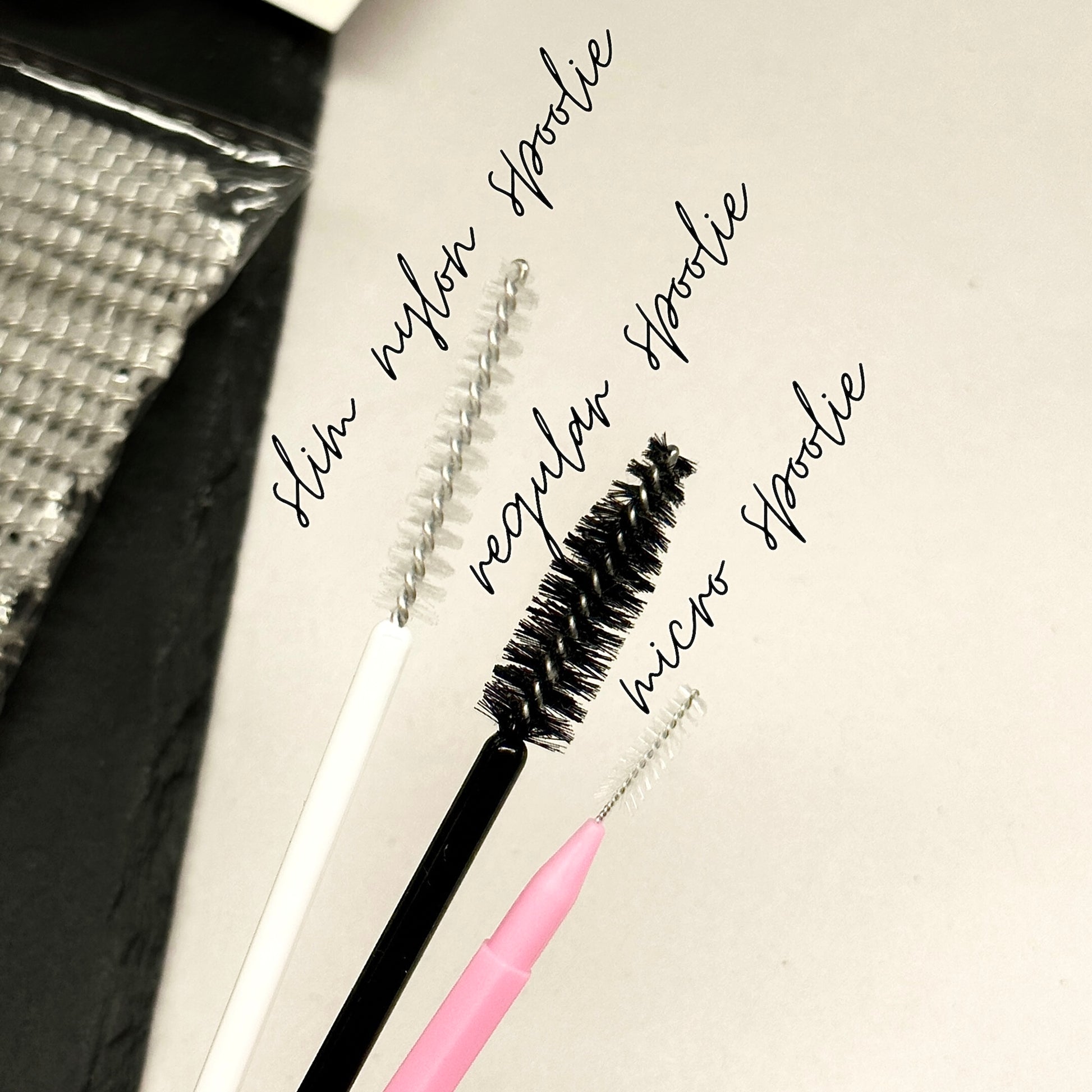 Our latest obsession, slim nylon spoolies! Think of your regular mascara brush plus a micro interdental brush. Slim nylon design allows the hairs to be perfectly separated. For lash extensions, brow laminations, and lash lift services.
