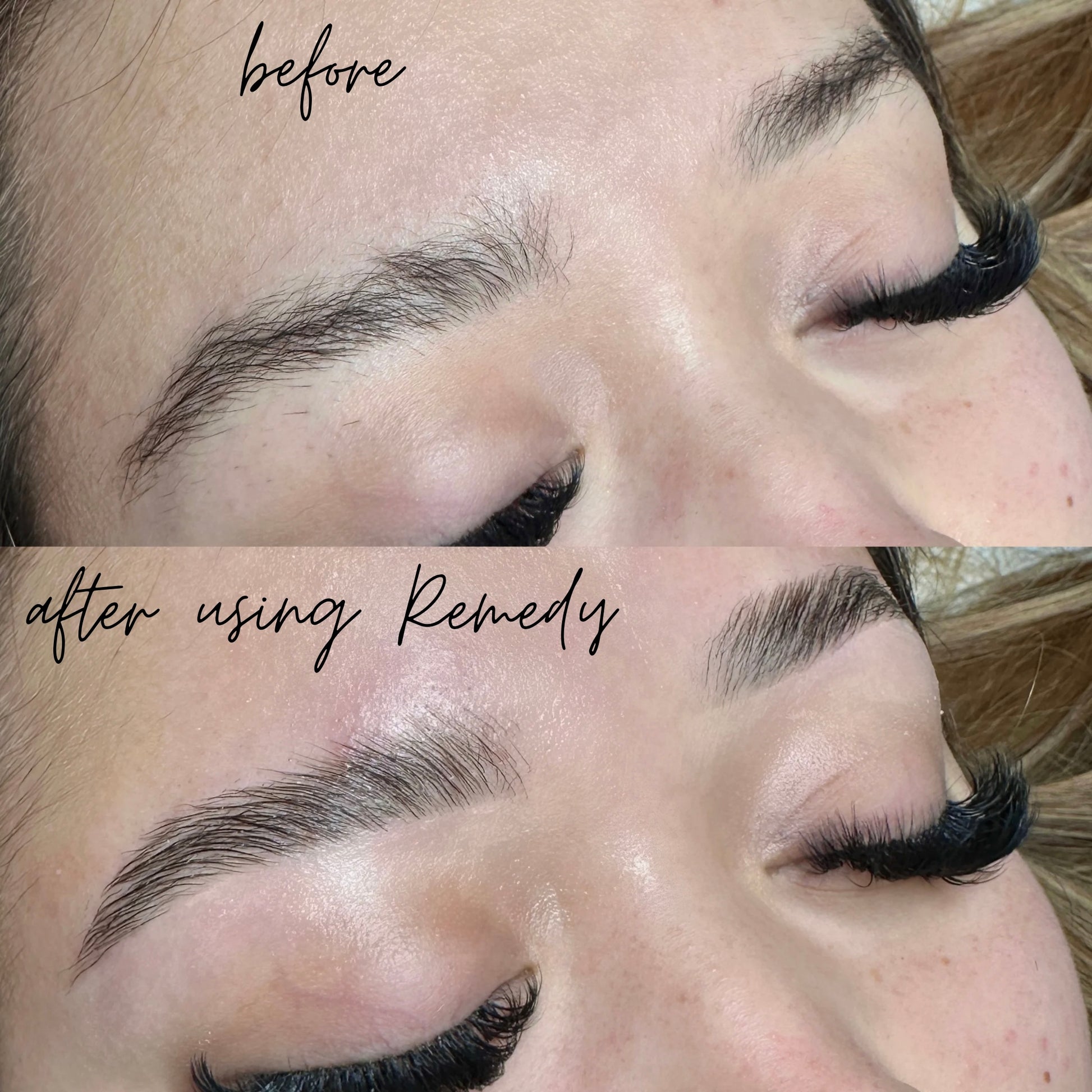 Our Brow and Lash Remedy is an innovative and versatile repairing conditioner that works for both eyebrows and eyelashes. It is perfect for those who have damaged, dry, or brittle hairs, due to undergoing treatments such as lash lifts or eyebrow laminations. Remedy's creamy formulation ensures that it is easily absorbed into the hair follicles, delivering an intense dose of nutrients and hydration to each strand.